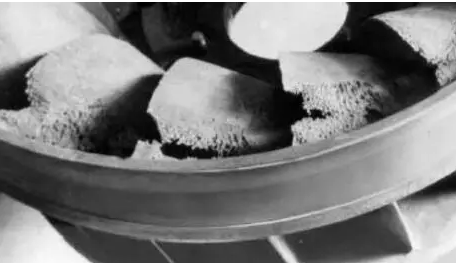 含氣泡的液體擠入高壓區后急劇凝結或破裂。因氣泡的消失產生局部真空,周圍的液體就以極高的速度流向氣泡中心,瞬間產生了極大的高達幾萬kpa的高速沖擊力,造成對葉輪和泵殼的沖擊,使材料受到侵蝕和破壞。