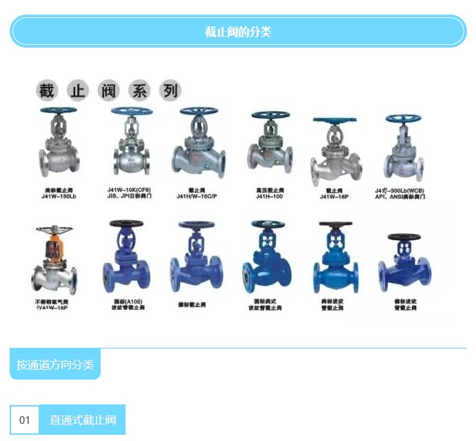 截止閥,也叫截門,是使用非常廣泛的一種閥門,它開閉過程中密封面之間摩擦力小,比較耐用,開啟高度不大,制造容易,維修方便,不僅適用于中低壓,而且適用于高壓。