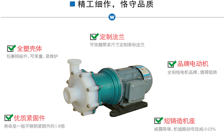 氟塑料磁力泵又稱其為氟塑料磁力離心泵、氟塑料磁力驅動泵、耐腐蝕磁力化工泵,CQB-F全塑磁力泵是氟塑料磁力泵中的經典結構款型。