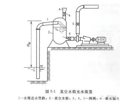 真空引水裝置,是通過進水管路先把水吸入密閉水箱中,水泵從水箱中吸水,使水箱中產生一定的真空值,在此真空值的作用下,水從進水池經進水管路進入水泵真空引水裝置。