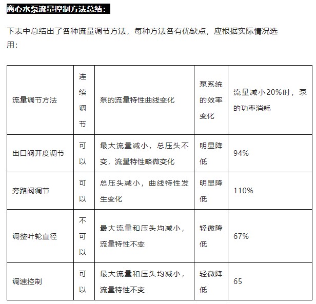 (1)出口閥開度調節,能量消耗為94%,流量較低時消耗功率較大。